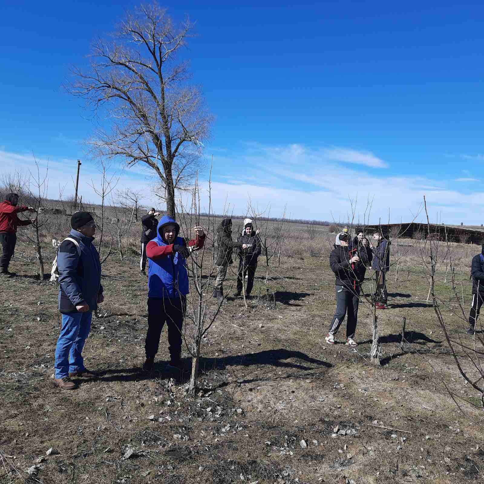 За період проходження практики під керівництвом викладача агрономічних дисциплін Чемериса Ю.Л. студенти ІІІ курсу набули практичних навичок з техніки окуліровки, щеплення та обрізування плодових дерев. Визначали потребу у садівному матеріалі, проводили розмітку ділянки під посадку яблунь та вжили заходів із догляду за плодовим садом.
