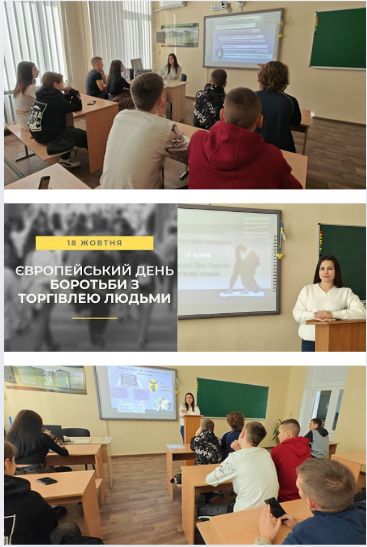 Щорічно 18 жовтня відзначається Європейський день боротьби з торгівлею людьми, мета якого – висвітлення проблеми торгівлі людьми, необхідність об’єднання зусиль для протидії цьому явищу, переслідування злочинців, надання допомоги постраждалим особам. Торгівля людьми — це не лише глобальна проблема, а й реальна загроза, яка може торкнутися кожної громади й кожного підлітка.