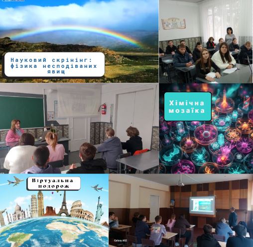 Вівторок був присвячений захопливому Дню природничих наук, де ми поринули у світ формул, реакцій та географічних відкриттів: хімічні перегони та відеолекторій «Хімічна Мозаїка» (викл. Білоконенко Г. В.), науковий скрінінг: «Фізика несподіваних явищ» (викл. Брошеван Т. В.), віртуальна подорож з географії до найвіддаленіші куточків планети (викл. Щіченко В. О.).