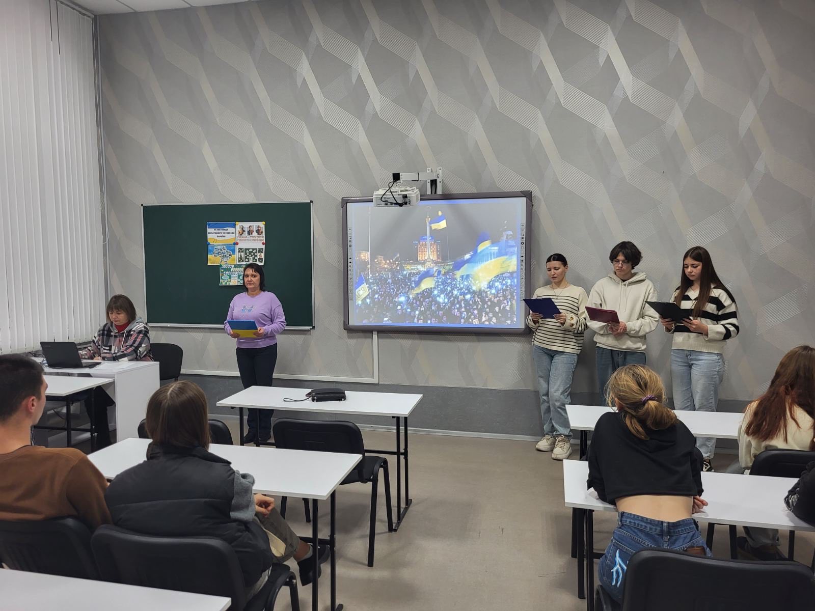 Про новітню історію України та її боротьбу за незалежність і європейський вибір студенти ІІ курсу ознайомились під час проведення виховної години до Дня Гідності та Свободи. Виховна година ефективно встановила зв’язок між подіями 2013-2014 років та сучасною боротьбою України проти повномасштабної агресії. Метою заходу було виховувати глибоке почуття патріотизму, національної гідності, поваги до захисників незалежності та суверенітету України.