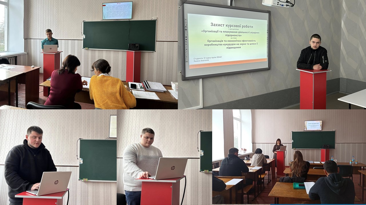 У період екзаменаційної сесії в коледжі відбувся захист курсових робіт з дисциплін «Організація та планування діяльності аграрних формувань» та «Технологія виробництва продукції рослинництва», який організували та провели викладач економічних дисциплін Давигора Т.А. та викладач агрономічних дисциплін Андрєєв В.І. Захід став важливою складовою підсумкового контролю результатів навчальної діяльності здобувачів освіти спеціальності 201 Агрономія.