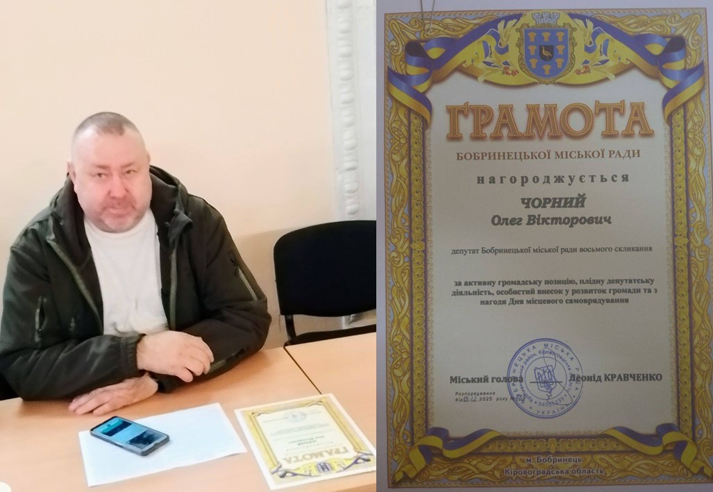 За активну громадську позицію, плідну депутатську діяльність, особистий внесок у розвиток громади та з нагоди Дня місцевого самоврядування Грамотою Бобринецької міської ради нагороджено викладача ВСП “Бобринецький АФК ім. В. Порика БНАУ”