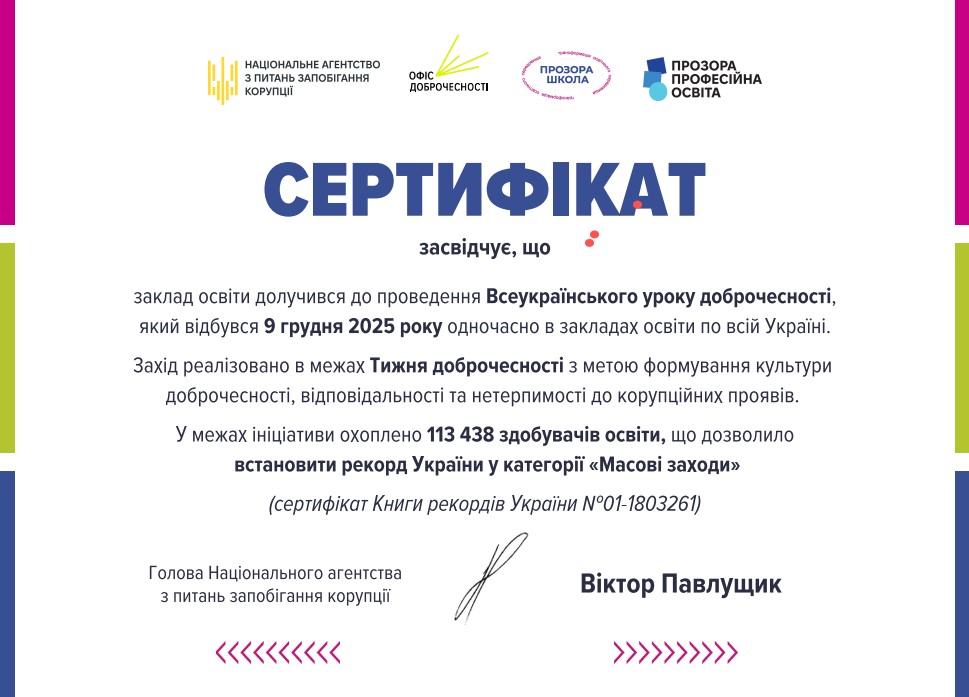 Студенти спеціальностей Н1 Агрономія та G18 Геодезія та землеустрій стали учасниками фіксації національного рекорду — за кількістю студентів, які одночасно взяли участь у Всеукраїнському уроці доброчесності. Це важлива ініціатива, що об’єднує освітян по всій країні й підкреслює значення чесності та відповідальності в освіті. Академічна доброчесність сьогодні має надзвичайно велике значення для кожного учасника освітнього процесу.