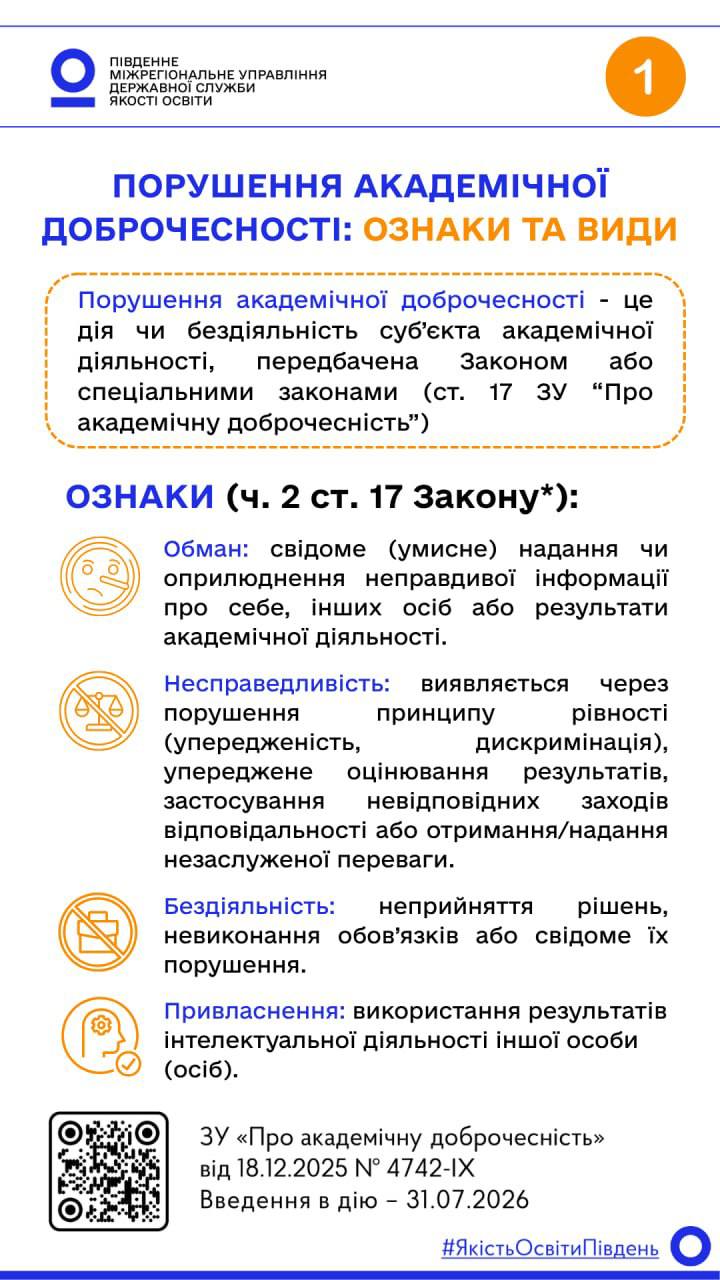 Анкета про визначення рівня обізнаності щодо процедур дотримання академічної доброчесності, її популяризації в академічному середовищі та заходів щодо реагування на прояви академічної недоброчесності для здобувачів освіти 2025 – 2026 н.р.