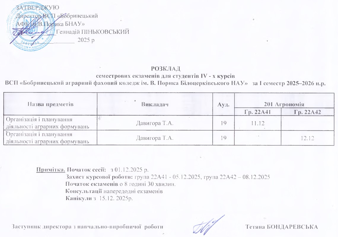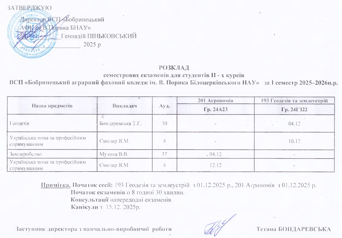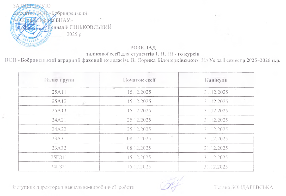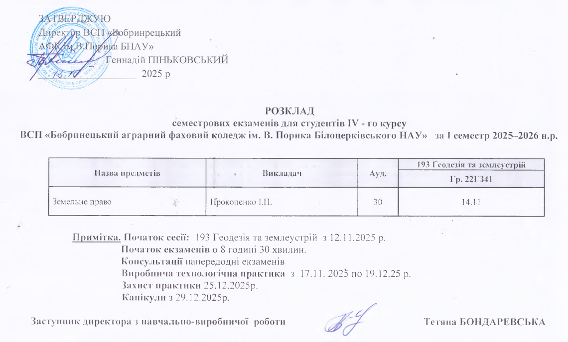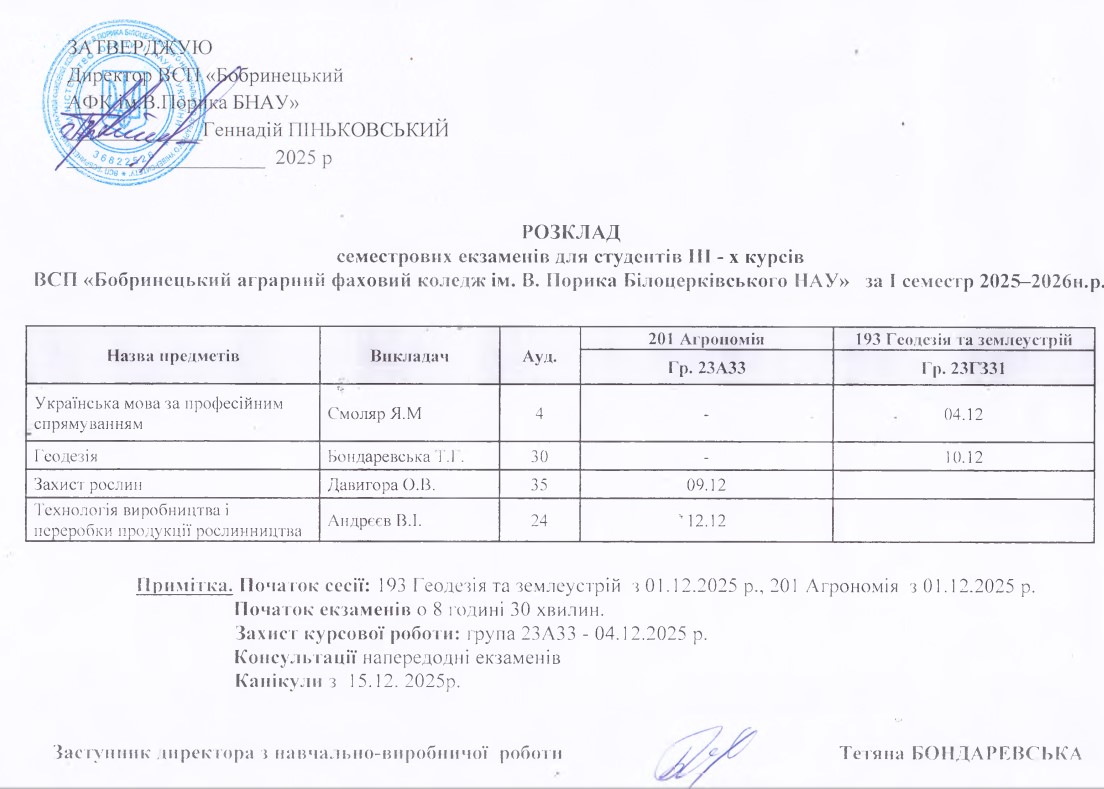 Розклад екзаменаційної сесії