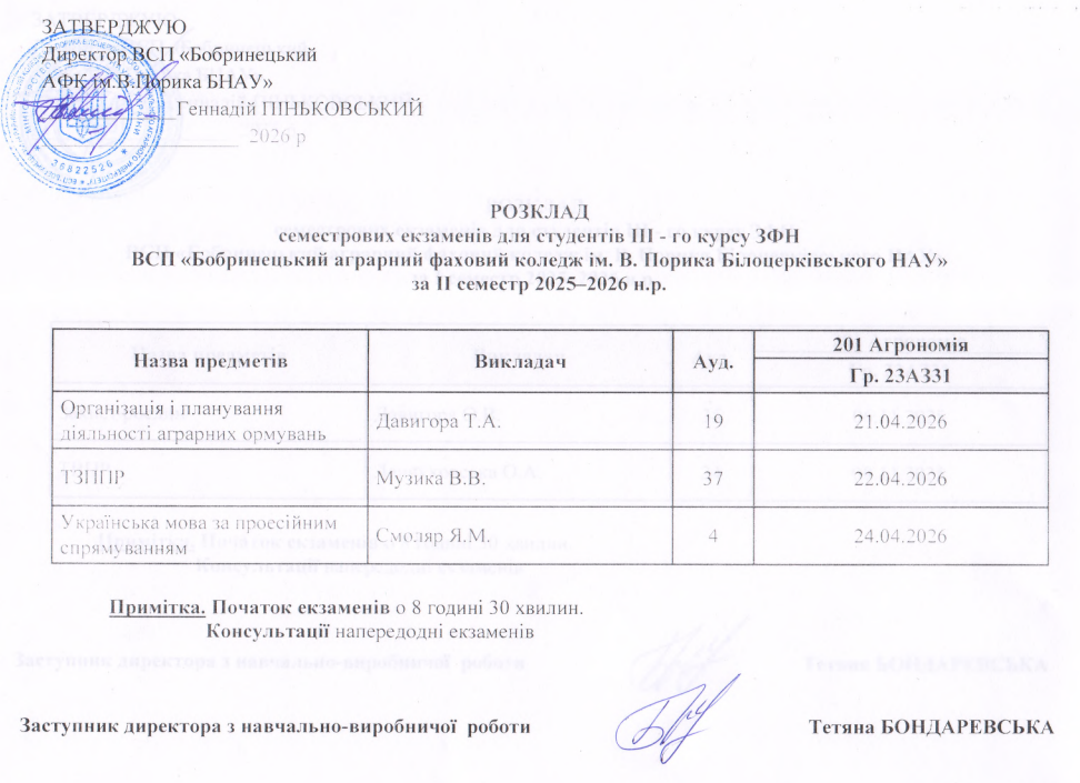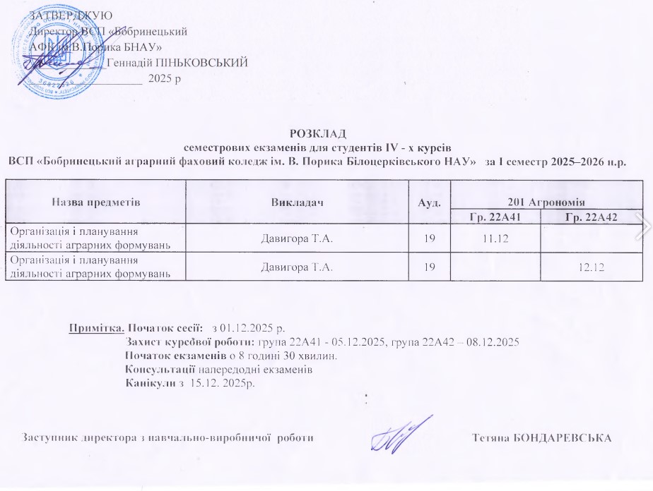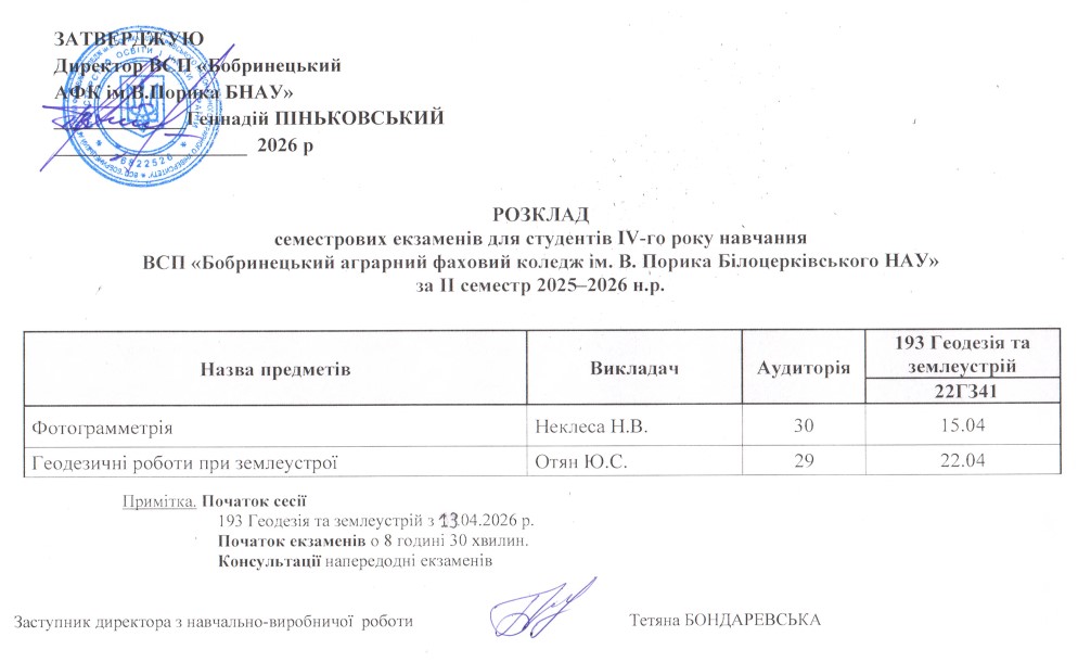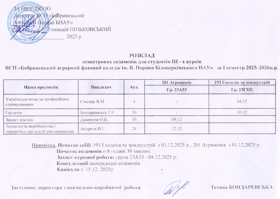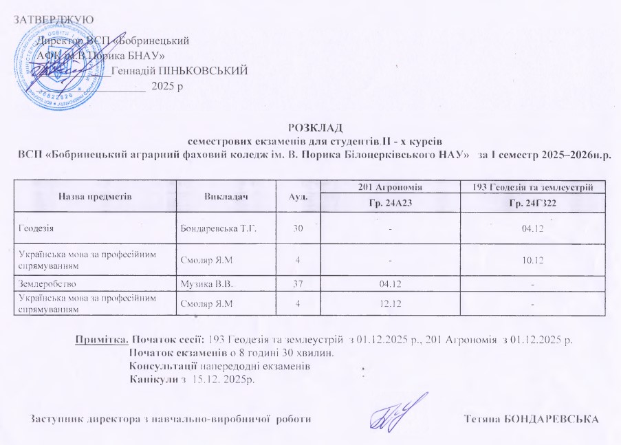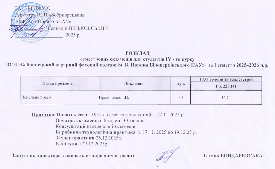 - Розклад екзаменаційної сесії